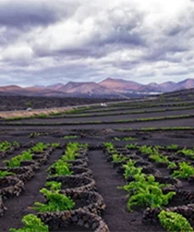 Cultivados sobre ceniza volcánica y protegidos por muros de piedra semicirculares, los vinos de Lanzarote son únicos en el mundo.